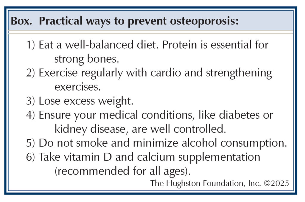 Above all, ask your primary care doctor or an orthopaedic provider about your risk factors and treatment options to maximize your bone health and improve your quality of life.